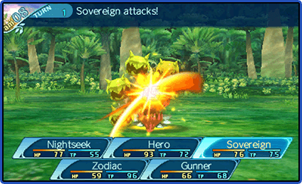Encountering enemies while you are exploring will initiate a battle. Combat takes place using a turn-based command system. Make good use of skills to secure victory and gain experience so you can further strengthen your party.